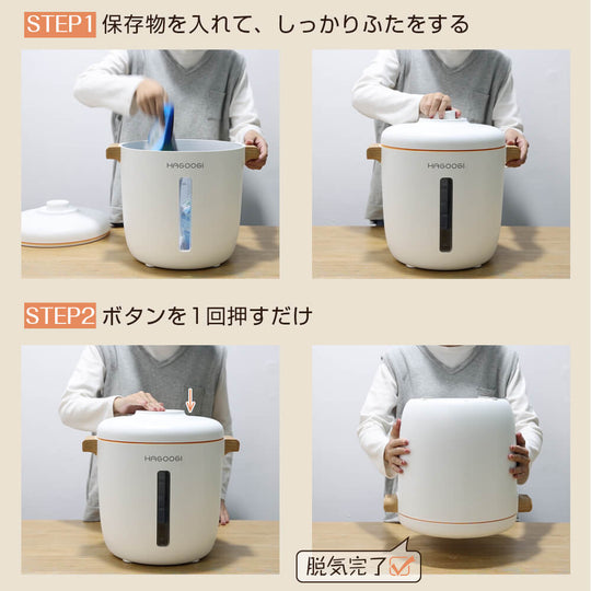 真空状態になると、蓋を手で開けようとしてもビクともしません。完全密閉になっているのが確認できました!